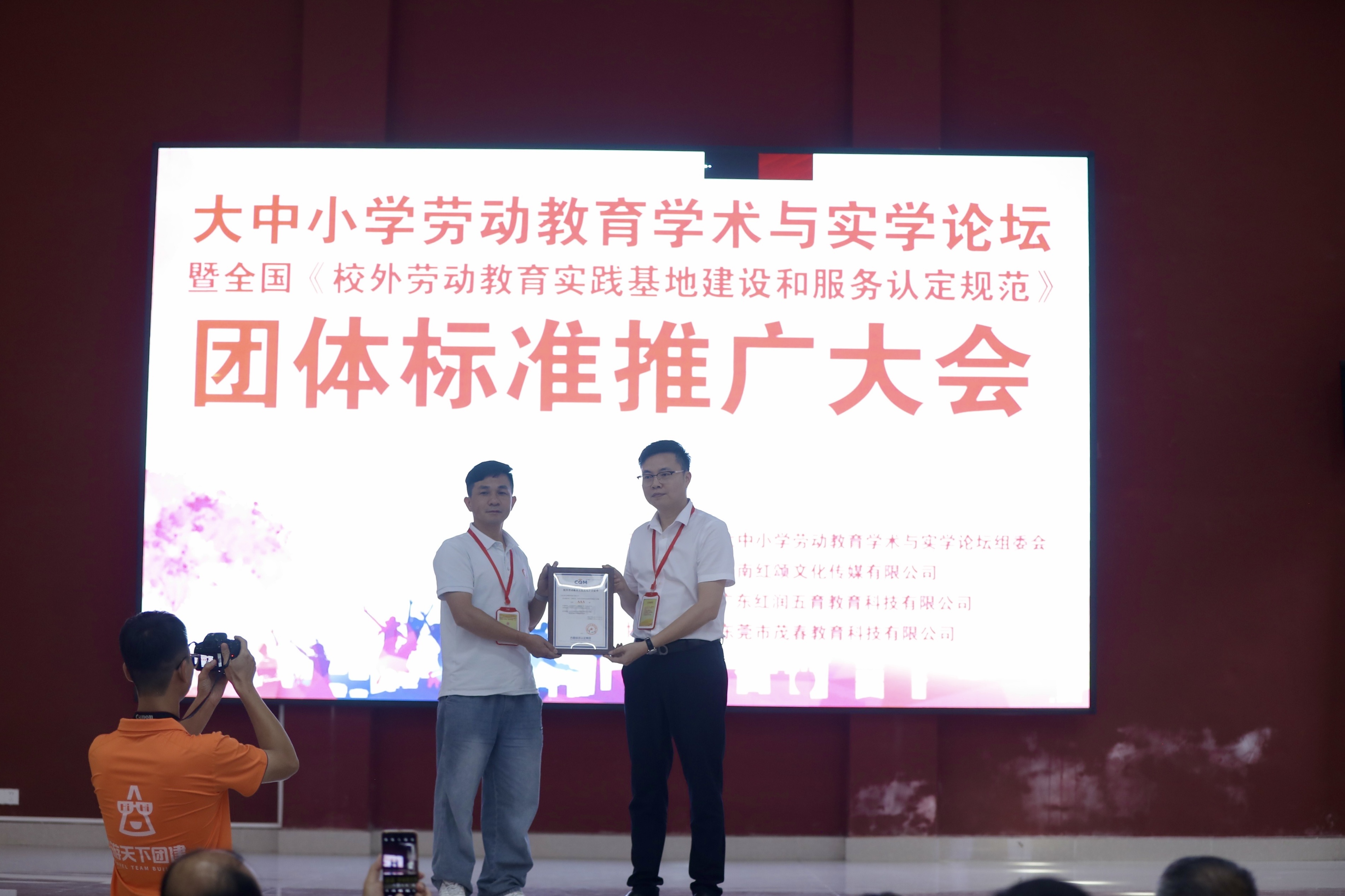 張耿彬總經(jīng)理向廣東紅潤五育教育科技有限公司頒發(fā)了首張校外勞動教育實(shí)踐基地評價AAA證書。